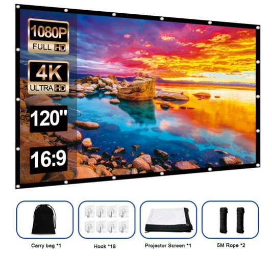 FANGOR 120" Projector Screen, Foldable 16:9 HD Anti-Crease Portable Outdoor Movies Screen, Ideal choice for Home Theater