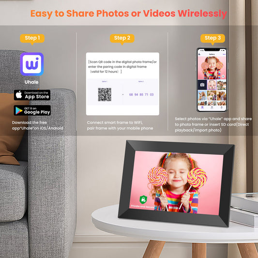 X-901 WiFi Digital Photo Frame, 10.1 Inch IPS Touch Screen Electric Smart Picture Frame