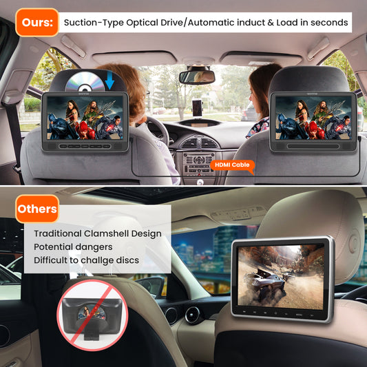 Fangor Premium 10" Dual DVD Players for Car, Ideal Gift for Keeping Kids Quiet and Comfortable on Long Car Trips (DVD Player + Monitor)