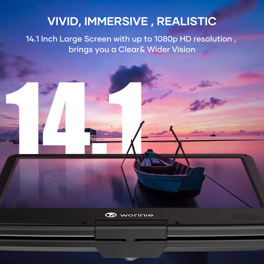 WONNIE 16.9inch Blu Ray DVD Player, Portable DVD Player with 14.1" 1080p HD Screen,Portable CD Player built in 5000mAh Battery, Supports HDMI Output, Dolby Audio, Last Memory, USB/SD Card, AV in