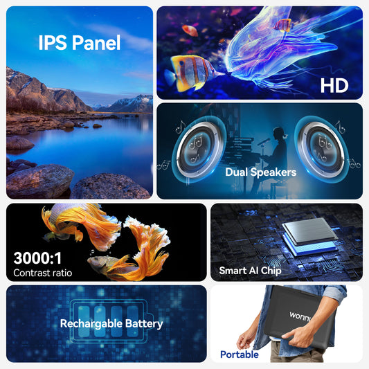 WONNIE Portable Blu Ray DVD Player, 16.9 inch DVD Player with 14.1" 1080p HD Screen, Blu Ray Players built in 5000mAh Battery, Supports HDMI Output, Dolby Audio, Last Memory, USB/SD Card, AV in