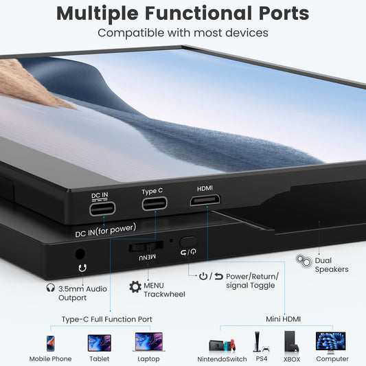FANGOR Portable Monitor 15.6", 60Hz FHD 1080P IPS Monitor, 100% sRGB HDR Ultra-Slim Travel Monitor for Laptop, USB-C/HDMI Laptop Screen Extender with Smart Cover for PC Phone Mac Xbox PS4/5 Switch