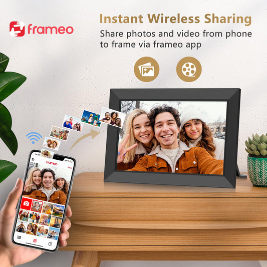 Frameo WiFi Digital Picture Frame - 10.1 Inch 1280x800 HD IPS Touch Screen Digital Photo Frame, 32GB Memory, Automatic Rotate, Wall Mountable, Easy Share Photos Videos Instantly, Best Choice for Gift