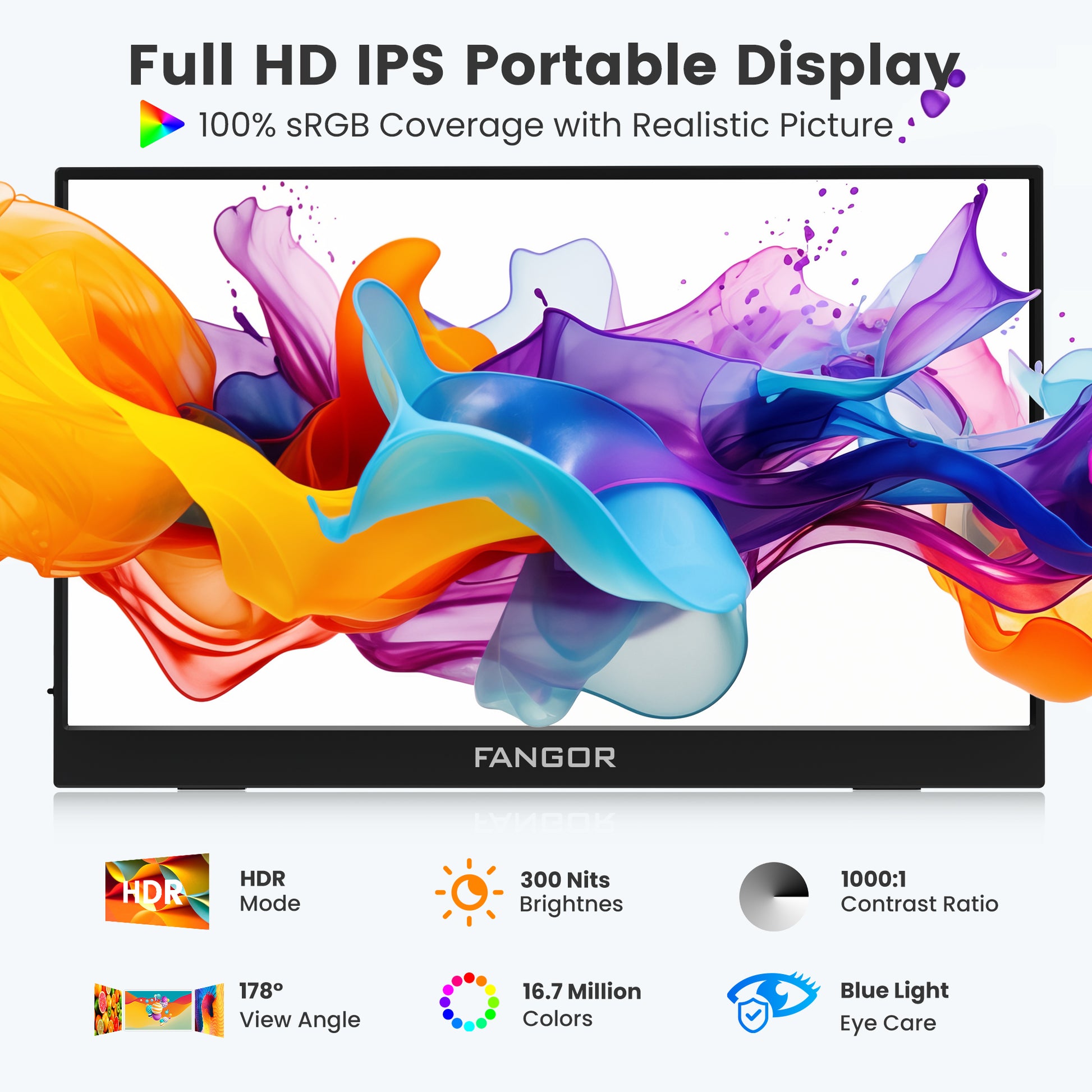 The Fangor 15.6-inch Portable Display is a high-performance, portable display device equipped with a Full HD 1080P IPS screen. It offers a resolution of 1920*1080, supports a wide 178°viewing angle, and boasts a 60Hz refresh rate with FreeSync functionality, ensuring smooth, stable visual experiences."